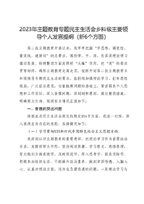 2023年主题教育专题民主生活会乡科级主要领导个人发言提纲(新六个对照方面).docx