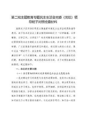 第二批主题教育专题民主生活会党委(党组)领导班子对照检查材料(新六个对照方面).docx