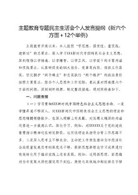 书记主题教育专题民主生活会个人发言提纲(新六个方面+12个举例).docx