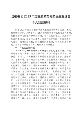 县委书记2023年度主题教育专题民主生活会个人发言提纲.docx