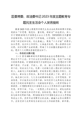 区委常委、政法委书记2023年度主题教育专题民主生活会个人发言提纲.docx