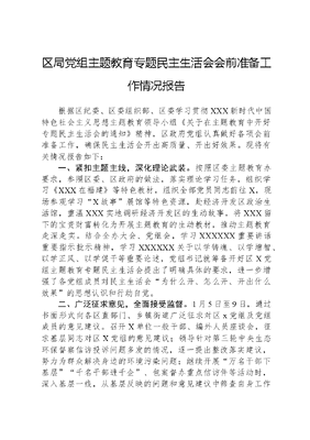 区局党组主题教育专题民主生活会会前准备工作情况报告.docx