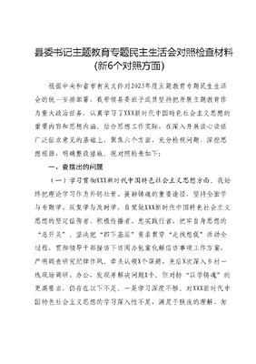 县委书记主题教育专题民主生活会对照检查材料(新6个对照方面).docx