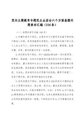 (316条)党内主题教育专题民主生活会六个方面查摆问题素材汇编.docx