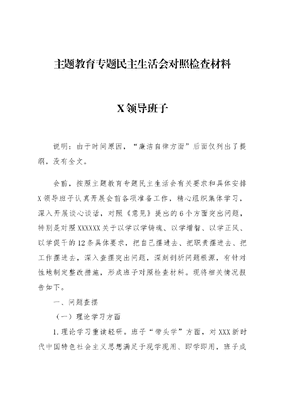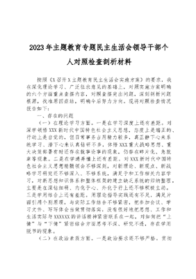 2023年主题教育专题民主生活会领导干部个人对照检查剖析材料.docx