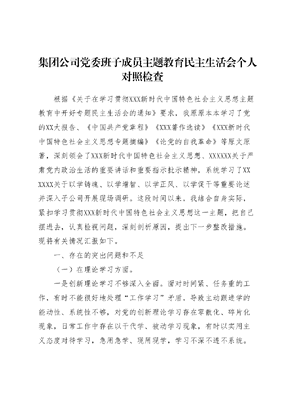 集团公司党委班子成员主题教育民主生活会个人对照检查.docx