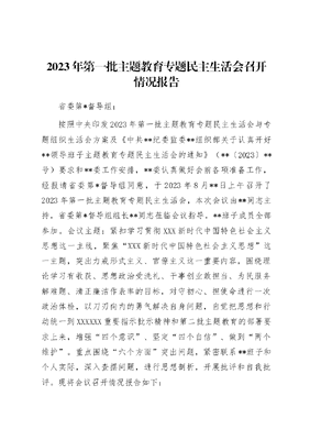 2023年第一批主题教育专题民主生活会召开情况报告.docx