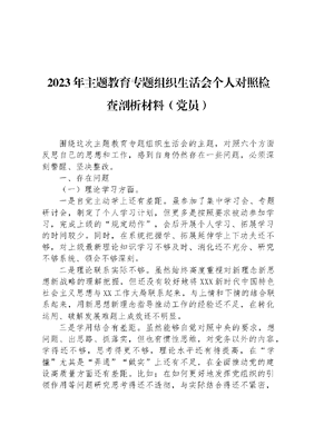 2023年主题教育专题组织生活会个人对照检查剖析材料(党员).docx
