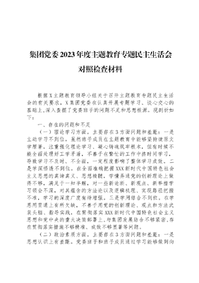 集团党委2023年度主题教育专题民主生活会对照检查材料.docx