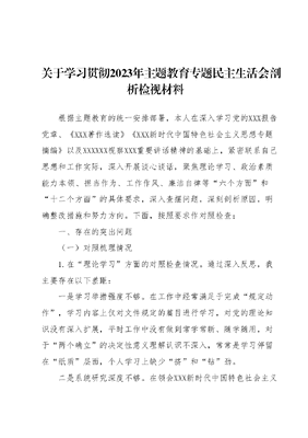 关于学习贯彻2023年主题教育专题民主生活会剖析检视材料.docx