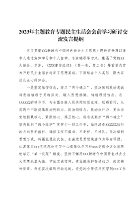 2023年主题教育专题民主生活会会前学习研讨交流发言提纲.docx