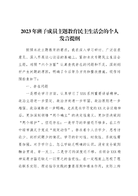 2023年班子成员主题教育民主生活会的个人发言提纲.docx