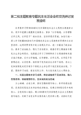 第二批主题教育专题民主生活会会前交流研讨发言提纲.docx