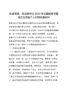 区委常委、政法委书记2023年主题教育专题民主生活会六个方面个人对照检查材料.docx