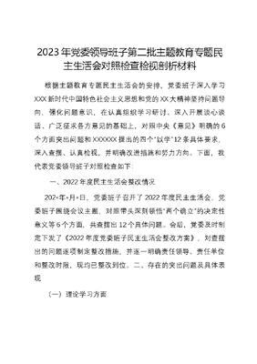 2023年党委领导班子第二批主题教育专题民主生活会对照检查检视剖析材料.docx