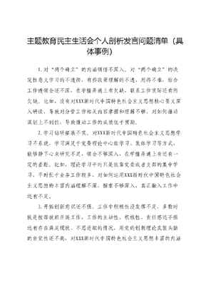 主题教育民主生活会个人剖析发言问题清单(具体事例).docx