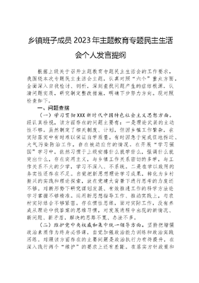 乡镇班子成员2023年主题教育专题民主生活会个人发言提纲.docx