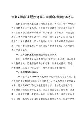 常务副县长主题教育民主生活会对照检查材料(新六个对照方面).docx