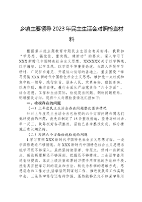 乡镇主要领导2023年民主生活会对照检查材料.docx
