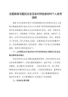主题教育专题民主生活会对照检查材料个人发言提纲.docx