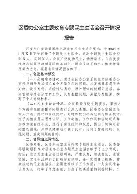 区委办公室主题教育专题民主生活会召开情况报告.docx