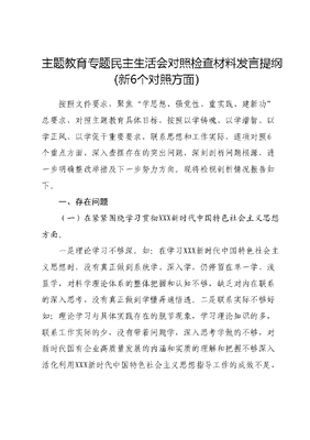 主题教育专题民主生活会对照检查材料发言提纲(新6个对照方面).docx