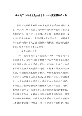 镇长关于2024年度民主生活会个人对照查摆剖析材料.docx