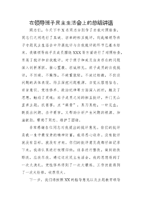 在不忘初心牢记使命主题教育专题民主生活会上的总结讲话.docx