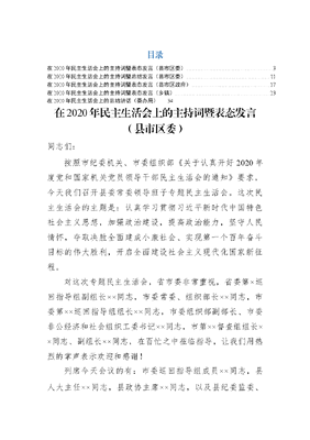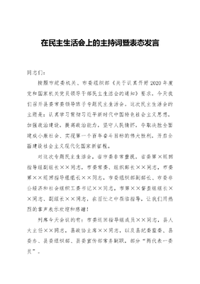 (5篇)在2020年民主生活会上的主持词暨表态发言.docx