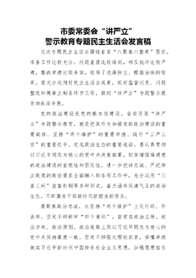 2018年市委常委会“讲严立”警示教育专题民主生活会发言稿.docx