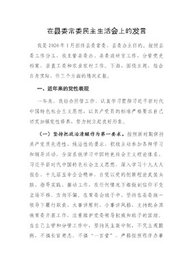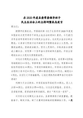 在2020年县委常委民主生活会上的主持词暨表态发言.doc