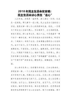 2018年民主生活会发言稿:民主生活会谈心贵在“走心”.docx