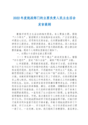 2022年度统战部门的主要负责人民主生活会发言提纲.docx