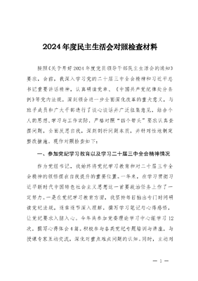 2024年度民主生活会“四个带头”对照检查材料(参考范文).doc