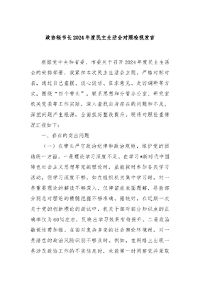 政协秘书长2024年度民主生活会对照检视发言.docx