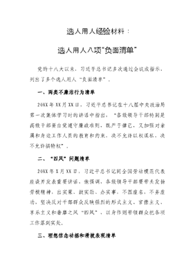 选人用人经验材料:选人用人八项“负面清单”.docx