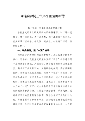 廉洁自律树正气率先垂范促和谐——第一实验小学党支部先进事迹材料.docx