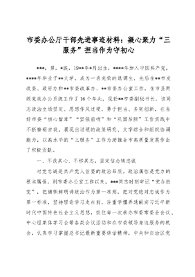 市委办公厅干部先进事迹材料:凝心聚力“三服务” 担当作为守初心.docx