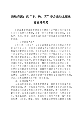 经验交流:抓“早、快、实”奋力推动主题教育良好开局.docx