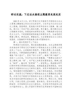 研讨交流:下足功夫+推进主题教育走深走实.docx