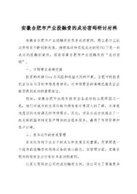 安徽合肥市产业投融资的成功密码研讨材料.docx