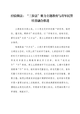 经验做法:“三步法”聚力主题教育与青年民警培养融合推进.docx