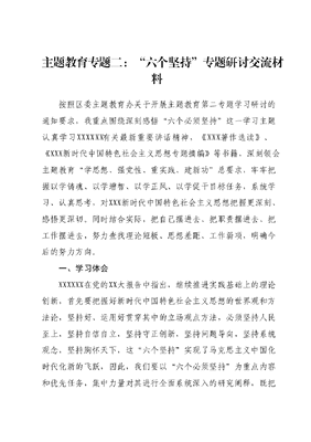 主题教育专题二:“六个坚持”专题研讨交流材料.docx