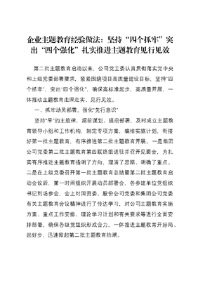 企业主题教育经验做法:坚持“四个抓牢” 突出“四个强化” 扎实推进主题教育见行见效.docx