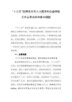“十三五”时期高安市人力资源和社会保障工作主要成就和基本经验.docx