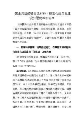 国企党建经验交流材料:标准化规范化建设引领发展加速度.docx