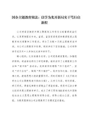 国企主题教育做法:以学为先开新局 实干笃行启新程.docx