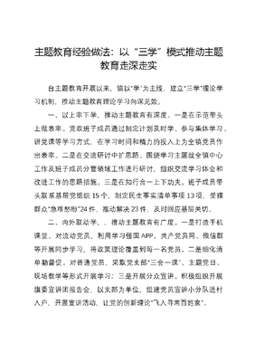 主题教育经验做法:以“三学”模式推动主题教育走深走实.docx
