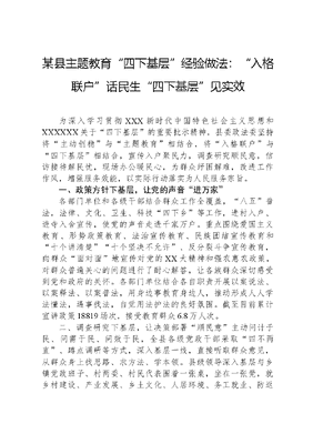 某县主题教育“四下基层”经验做法:“入格联户”话民生“四下基层”见实效.docx