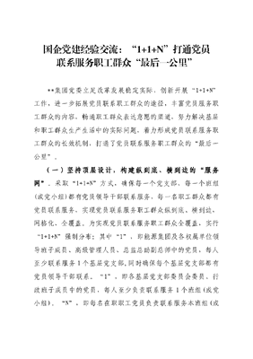 国企党建经验交流:“1+1+N”打通党员服务职工群众“最后一公里”.docx